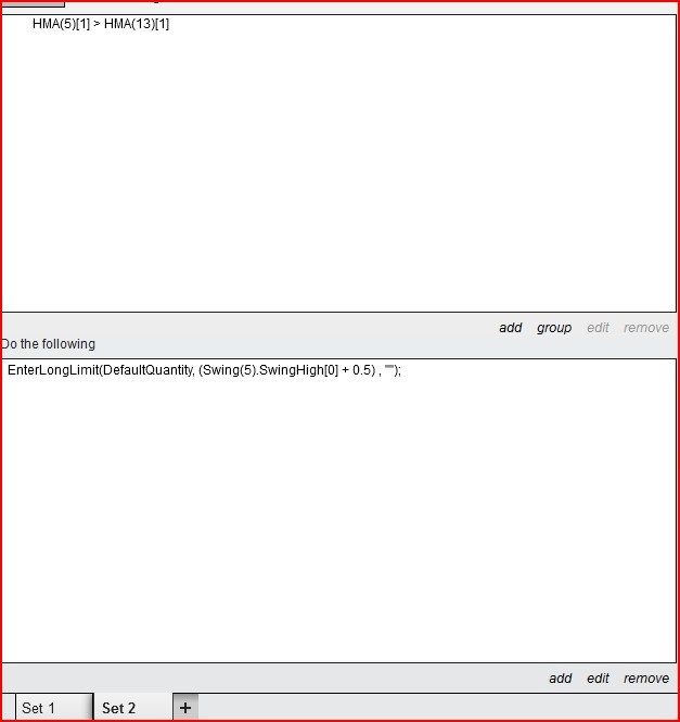 EnterLongLimit(DefaultQuantity,(Swing(5),SwingHigh[0] + 0.5),"").