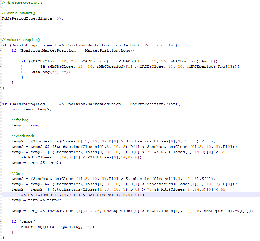I've got a strategy written in an other software package, I try to rewrite it into NT. I use two timeframes the 1 minute and 3 minute. When I compare the signals generated with those from my other package they aren't compatible with the results from NT.