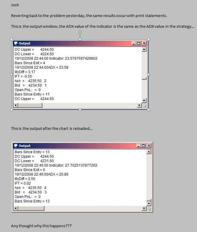ok, but my point is still the ADX value and the chart value are exactly the same (so therefore no problem) however, if or when the chart is reloaded with historical data the ADX value changes. Its that simple.