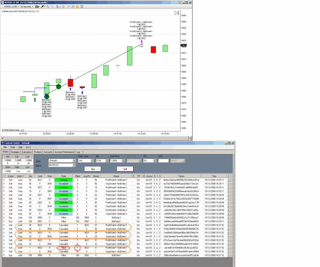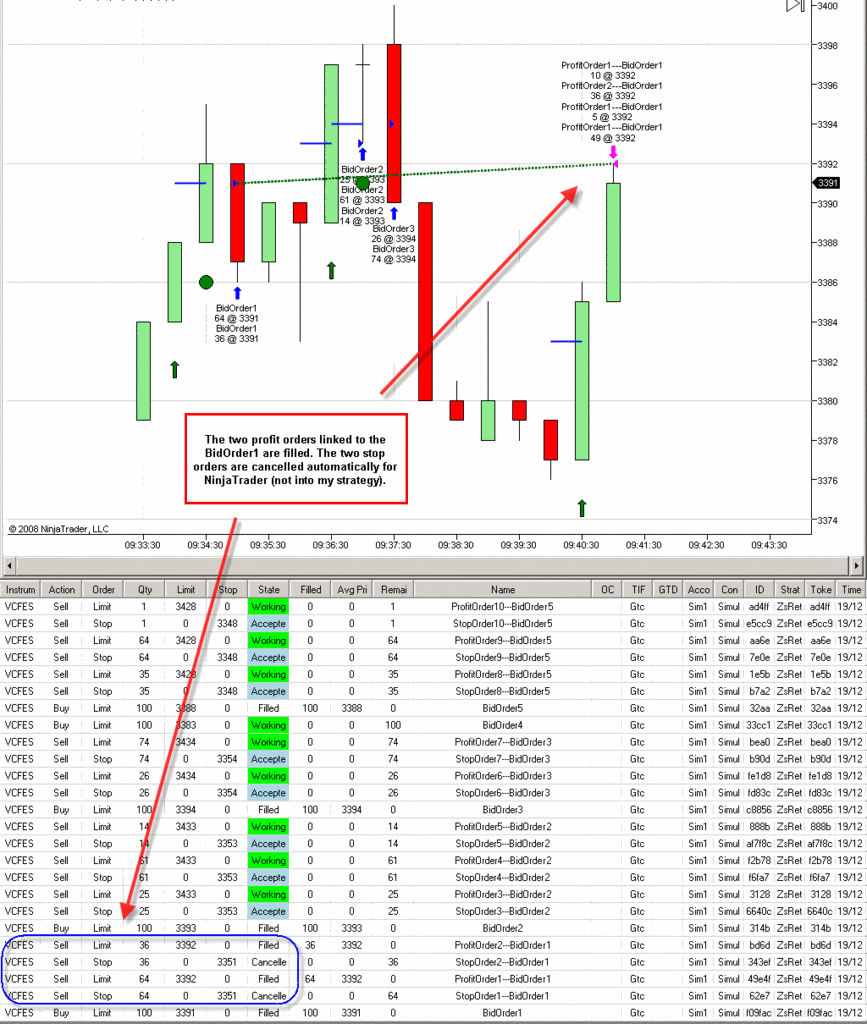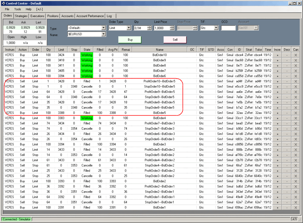 Normally is all ok, but sometimes some orders are cancelled misteriously. In the next image the bracket orders linked to BidOrder5 are cancelled when the first profit order is filled.