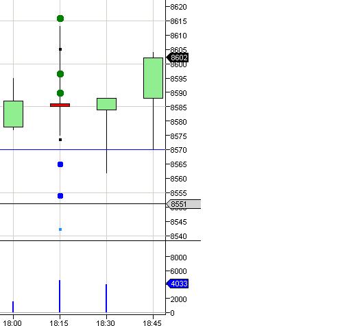 As you can see in the picture, the indicator fires at 18:15, however, the buy zone (between the blue dots) is only pierced at 18:30.