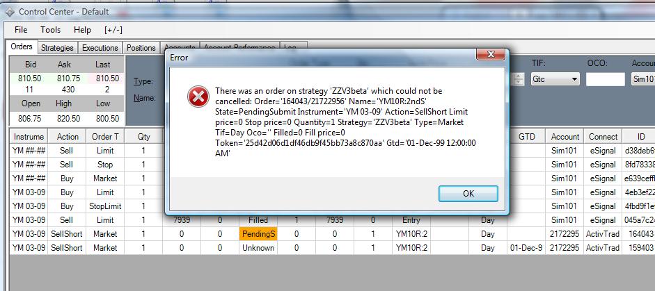 Moreover, it prevents any further entries from the strategy. The only way I know to get rid of that pending order is to disconnect and restart Ninja.