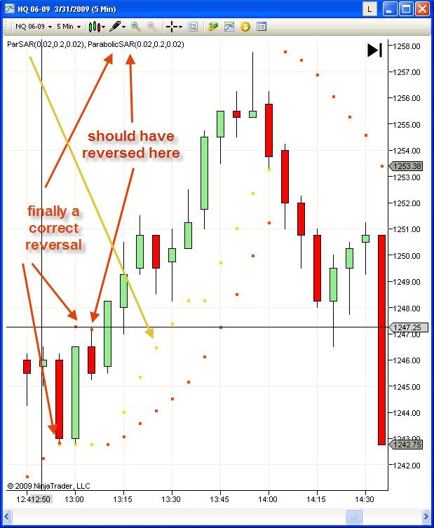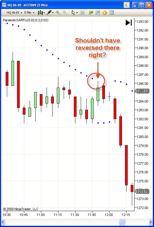 As stated in post #7, we are working on a few issues and will release another version shortly. In this version it will still require a penetration to reverse because that is what ParabolicSAR is defined as, but it should fix some other lingering issues. Thank you for your patience.Josh P.NinjaTrader Customer Service