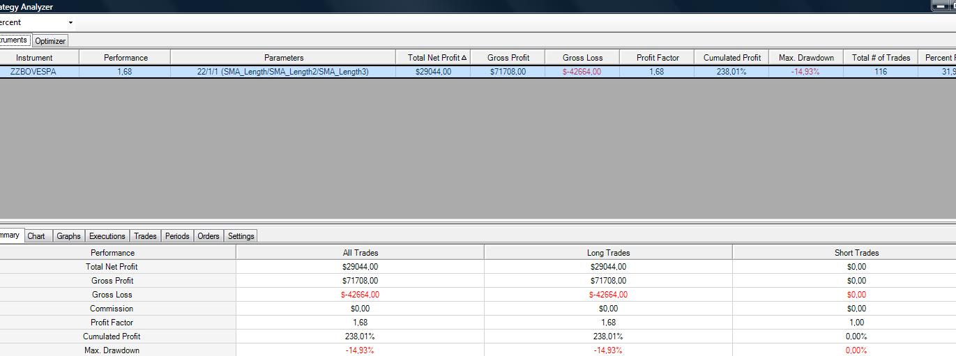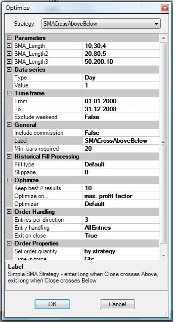 When optimizing, however, I receive only the optimal values for the first two SMA_Length variable, the third stays at one, but does generate any entries, exits.