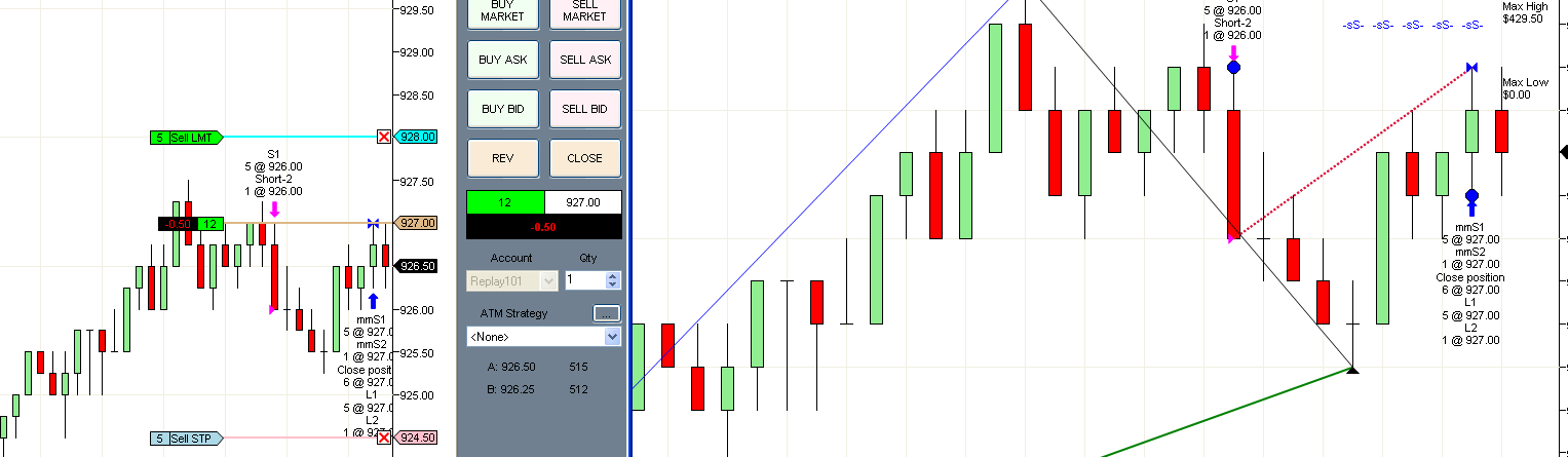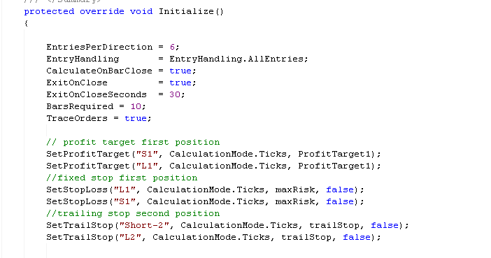 Enclosed are my orders and the initialize section of the strategy code which should of limited EntriesPerDirection to 6.. Here is the story,, was short 6, first blue bar with stops. The blue dot is an exit signal and a possible buy signal but not always so could not depend on it to take out the opposite position.. the label "mmS1","mmS2" comes from my code because of the blue dot.. The "close position" verbiage is not mine,, does this come from the stops??