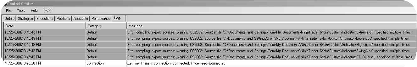 every time I try to export a file I get this error message "Error compiling export sources: warning CS2002: Sourcefile'C:\DocumentsandSettings\Administrator\M yDocuments\NinjaTrader\bin\Custom\Indicator\@EMA.c s' specified multiple times" this occurs every time and with any indicators i.e. EMA SMA Parabolic etc. present in the Strategy.This has only just started happening, I used to be able to export the same files without issues. Please let me know if you can shed any light on this problem