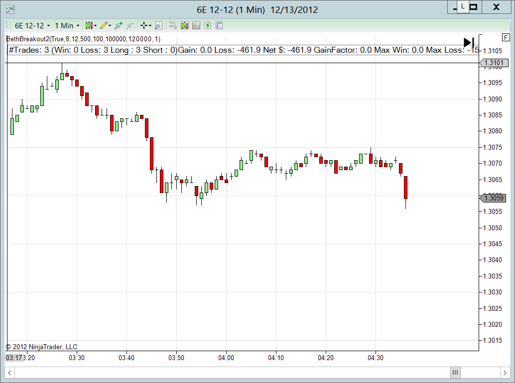 For ES, my strategy did not trigger a breakout trade when price broke up. Not sure why since it's working on 6E.