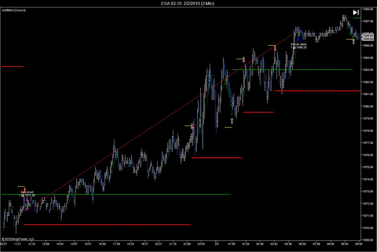 The short was entered and should have triggered approximately 3 hours later but instead it continued and exited on close(chart a). Not sure why.
