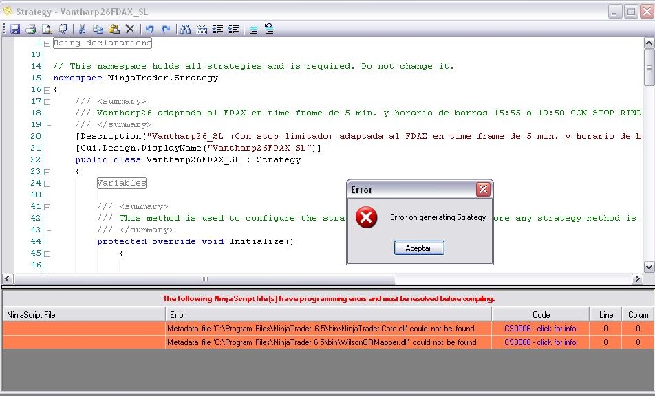 Error on Generating Strategy