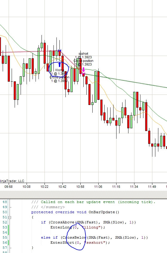 Enclosed is the test on sample moving crossover code and I put in some parms on orders... Zeros fire 1 contract!