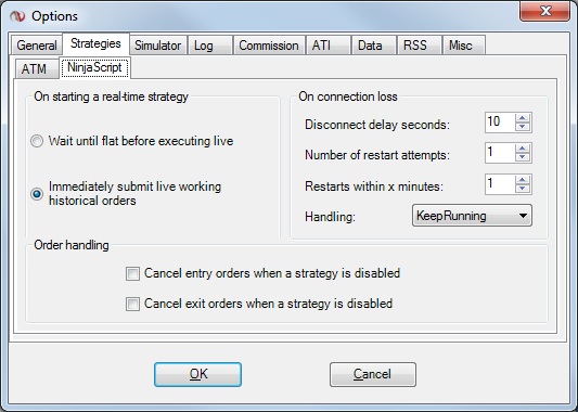 Thanks Simone. Will test this on Monday when there is a live feed to work from. I will also need all the strategy settings at run time as well as under tools > Options > Strategies > NinjaScript tab. Screenshots of these two would be helpful.