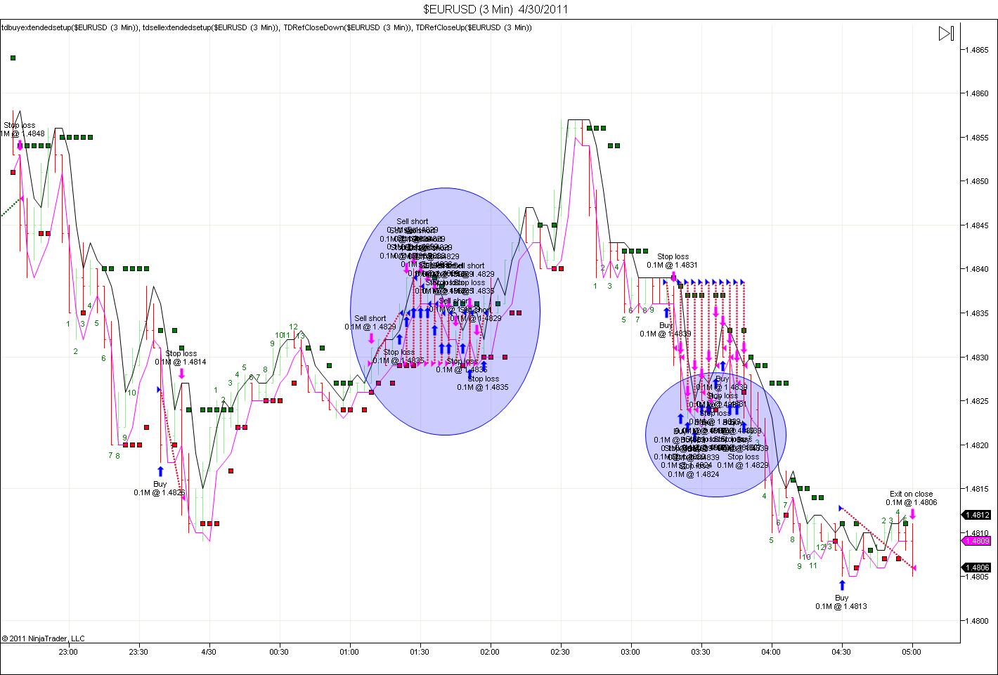 Would you mind taking a look at the strategy for me? The first circle of trades shouldn't even have occured as I thought I had coded for an entry to a MAX of 5 bars after the last green count. And this strange behaviour is occuring at least 10 bars after the last green count!