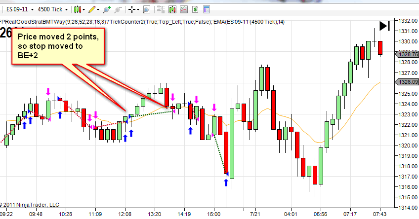 2. Price moves a fixed number of tics in my favor, then MOVES to BE+2 tics