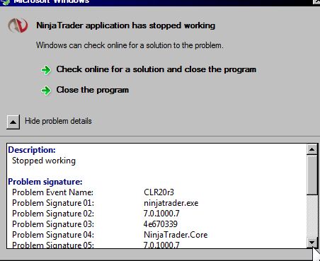 I tried the same here on 32 and 64 bit and could still not reproduce unfortunately - do you have / know Jing and could perhaps record quickly the exact actions you take on your end to produce this issue? That would immensly help in getting a reproducible scenario dialed out - if you wouldn't mind doing this, please contact me at support at ninjatrader dot com with the steps / clip.