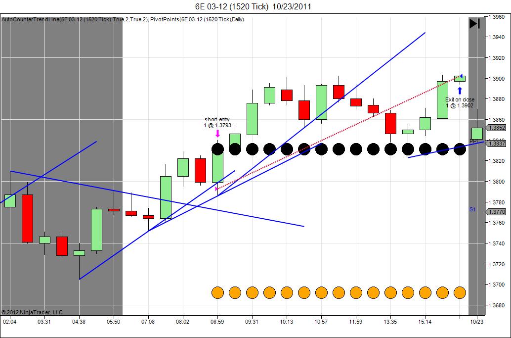 Where it’s failing is when during the same bar my entry order fills, then the stop loss level is hit, but the stop loss order never fires. See the attached chart for 10/23/2011.
