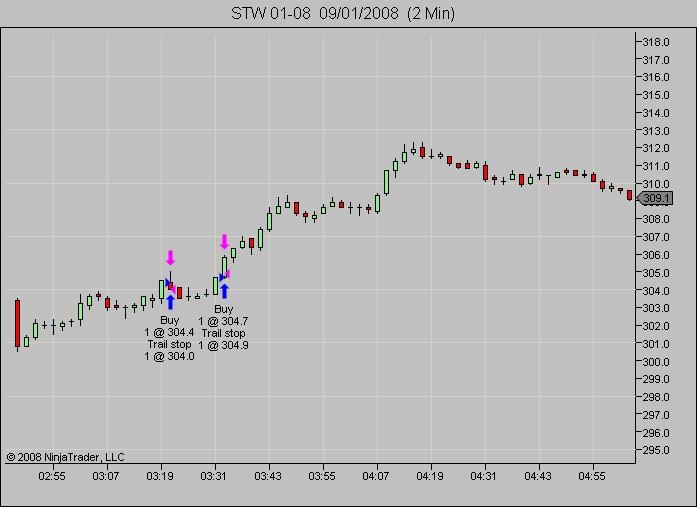 However, when I run it on a 2-min chart in Strategy Analyzer I get the attached result. What appears to happen is that when the 15-bar range gets broken, the buy happens at the open price of the following bar.