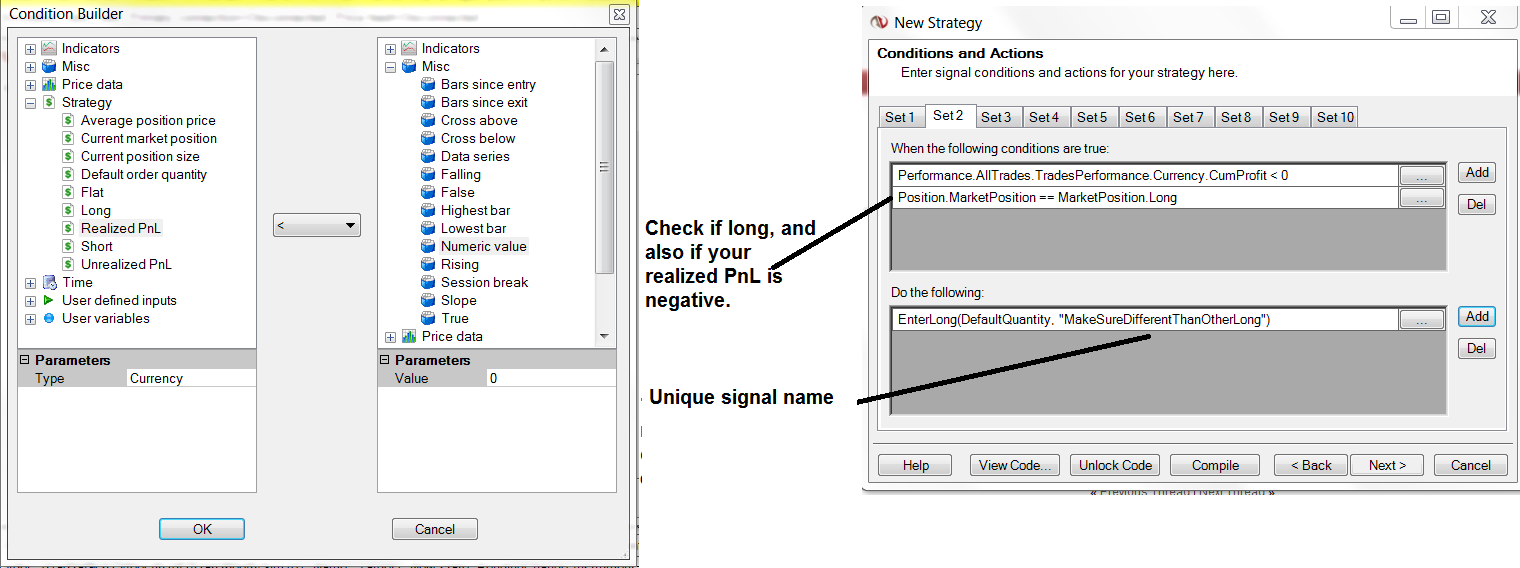 Please show me how to use the wizard to simply add to a long position if my current unrealized pnl is in the red. So if MACD crossed above 0 I go long and if my current position is negative then wait for MACD to cross above 0 again and add to this position. Basically I want to average lower my current position price. Thank youTags: None