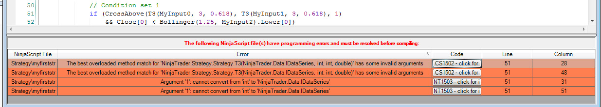 I am a complete beginner to programming. I am trying to create a basic ATM strategy in Ninjatrader 7 using the new strategy wizard. For some reason I am getting and error