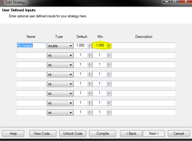 When doing any variation on that, NinjaTrader appears to ignore the fact that its a double and just goes straight to "1". Any way around this?Tags: None