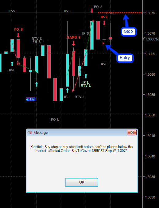 Unexpected error placing stop