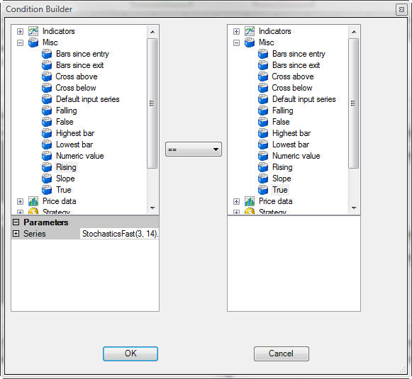 Hi I Am Having Difficulty Using The Rising/falling Condition In The Strategy Wizard, I Would Like To Have The Condition Be Stochastic Rising (<) Numeric Value 35, Or To Say That The Stochastic Is Rising But The Value Has Not Yet Exceeded 35, Please Help, Thank You.
