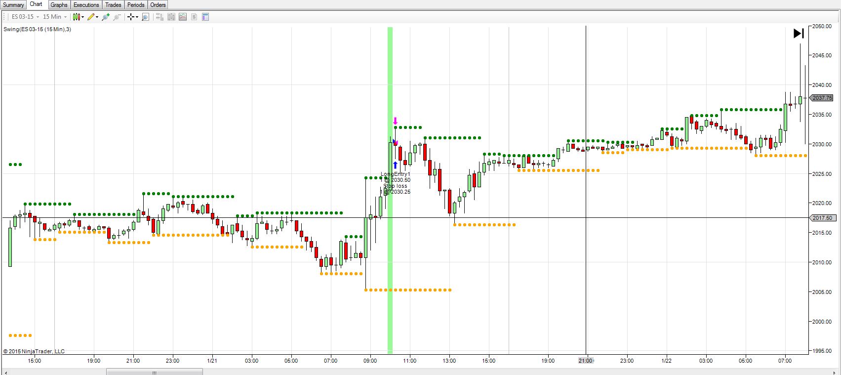 I'm having an issue with a strategy I'm backtesting and I need some help troubleshooting. The strategy is placing the entry stop order on a bar I don't want it to, usually several bars after the bar where I want it to be placed. See the attached screenshot for an example.