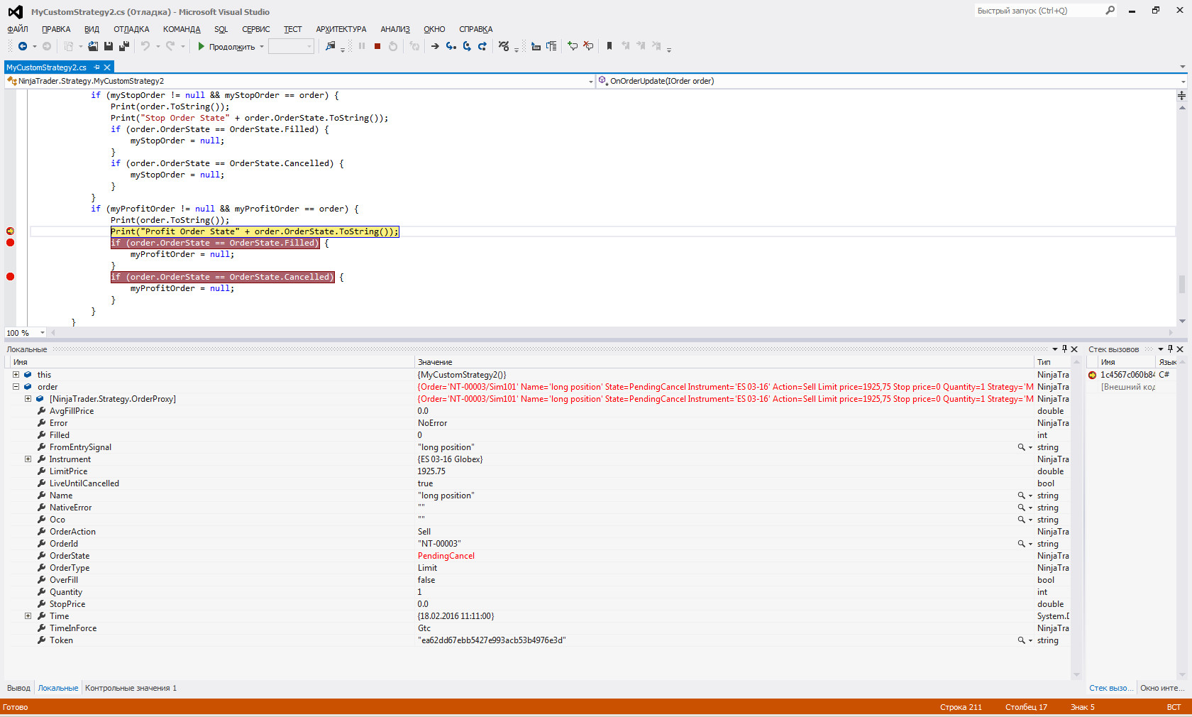 if (myProfitOrder != null) { CancelOrder(myProfitOrder); }