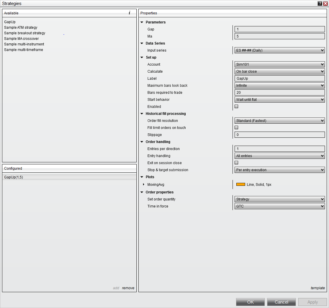 I am using NT8 and building a strategy that looks at a gap above an SMA. e.g.