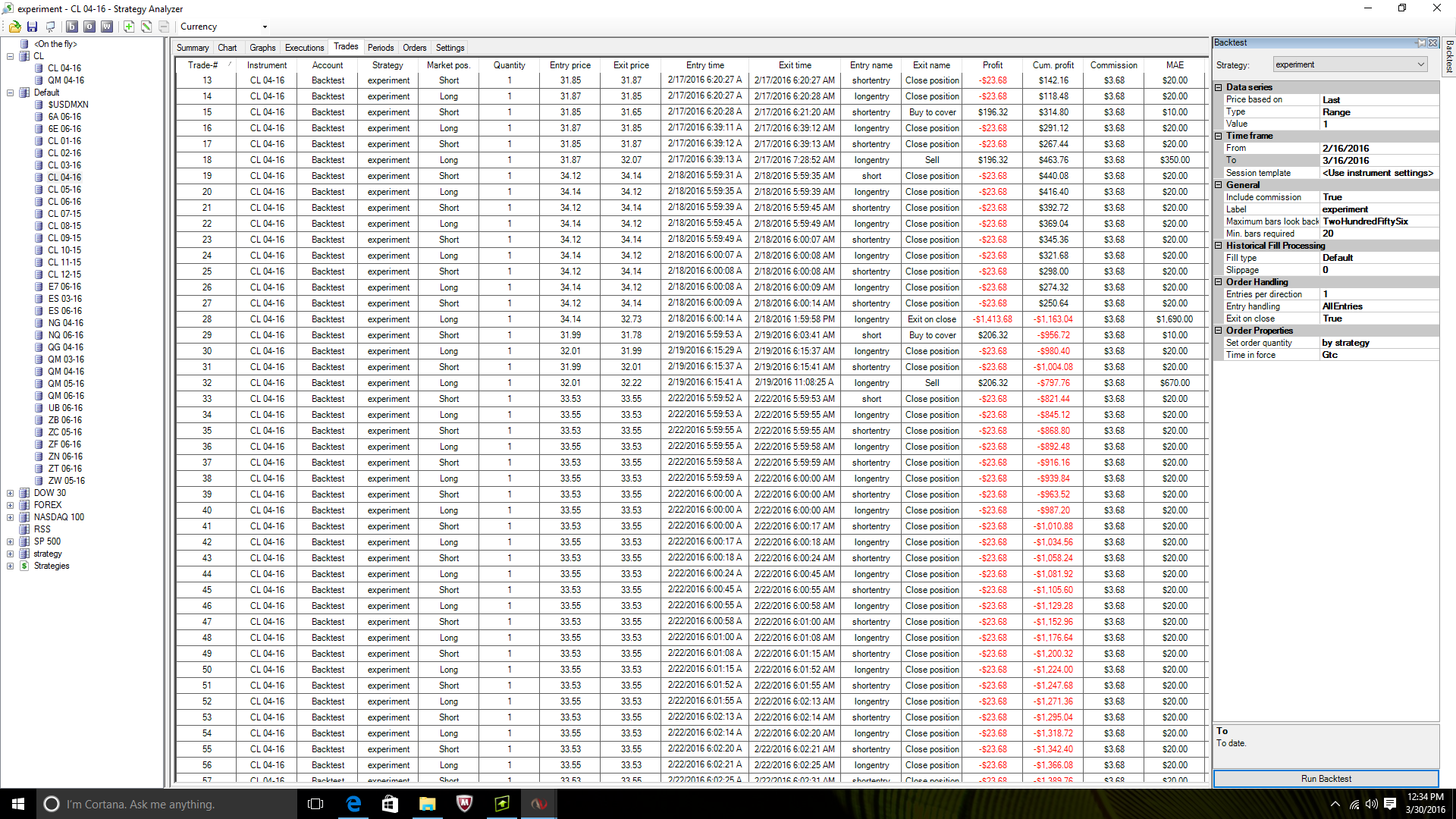 2/18/2016 6:00:13 AM Ignored PlaceOrder() method at 2/18/2016 6:00:13 AM: Action=SellShort OrderType=Stop Quantity=1 LimitPrice=0 StopPrice=34.12 SignalName=shortentry' FromEntrySignal='' Reason='Invalid order price, please see log tab'Last edited by sampras010; 03-30-2016, 12:27 PM.Tags: None