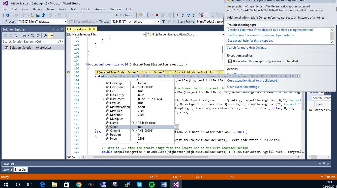 I am just starting work on an old strategy and I am getting a null exception on an execution.order object. That should not be possible right ?