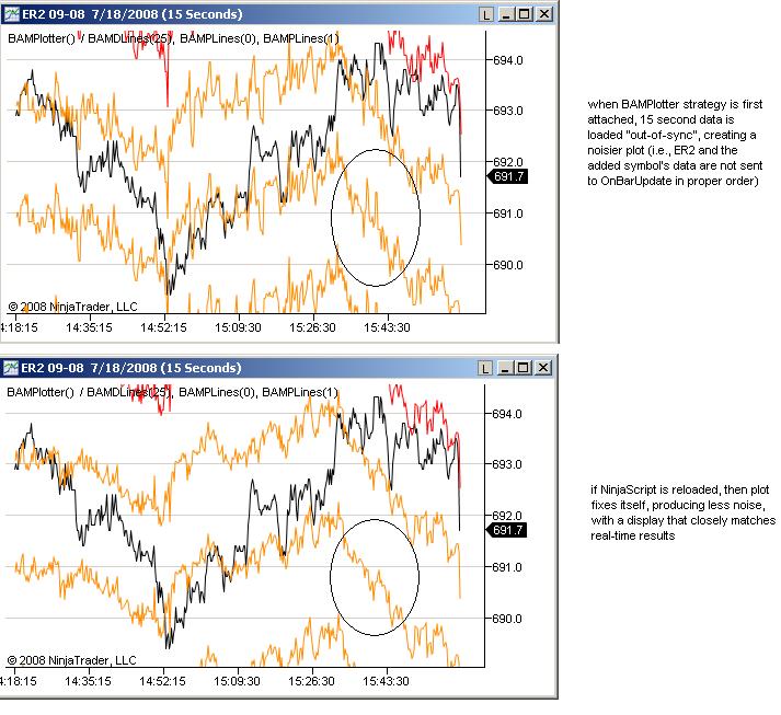 I've attached a "Test60Instruments" NinjaScript package containing the script and indicator, and a screen shot of a 1-minute ER2 window with the strategy and indicator attached. If one of the Ninja folks could load this up and try it out that would be great. I'll try to use it in this thread to illustrate the types of problems I'm having, and will review some of these in the next post. Thanks!