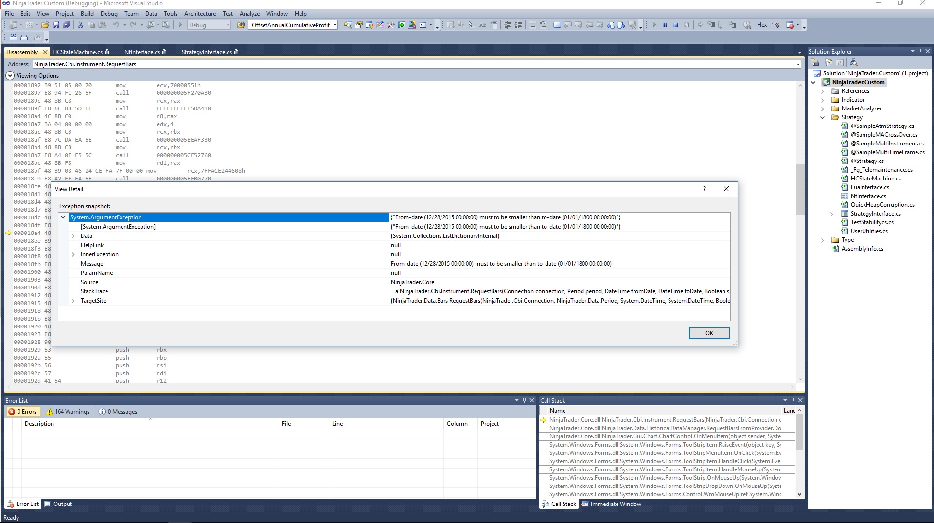 System.ArgumentExceptions: {"From-date (12/28/2015 00:00:00) must to be smaller than to-date (01/01/1800 00:00:00)"}