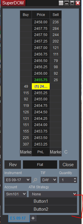 1 - This would require finding the parent ID and then the grid of to add the buttons. You can use Inspect.exe from within Microsoft Windows. And the window class is NinjaTrader.Gui.SuperDom.SuperDom, I would recommend seeing what you can do from here.