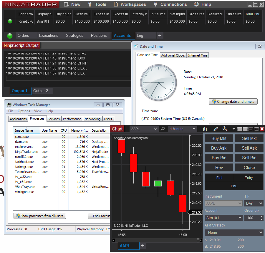Could you please walk me through how 60 real-time data streams could use up 11+ GB of RAM in less than 48 hours (especially on the weekend when the stock exchange is closed)? Is that something you've tested on your platform -- in case it is and it has behaved differently, then I should spend more time looking through my own code to make sure it's not some other issue. Having said that my code is rather simple in terms of variable generation etc. so the likelihood of a memory leak this large I believe is small.