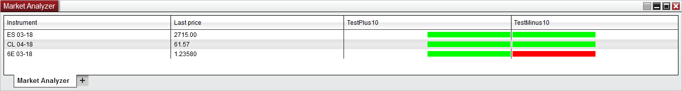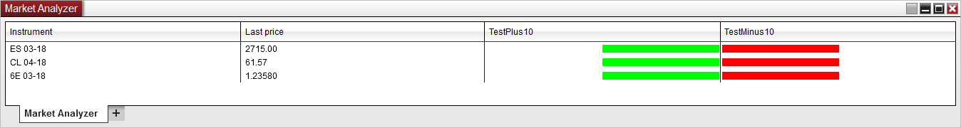 The Market Analyzer is not designed to display graphics like the chart. Can you detail how you are drawing these bar graphs in the cells of the columns?