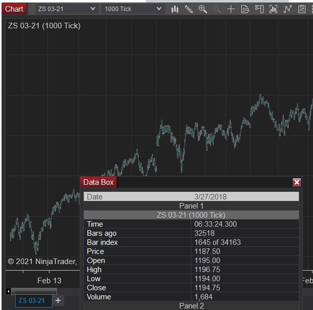 A quick test using the affordable CQG Continuum feed pulled up three years of tick data on ZS.Originally posted by luxurious_04 View PostDoes someone know where to download tick data way back to 2019? Kinetic Datafeed only provides tick data way back to August 13, 2020.