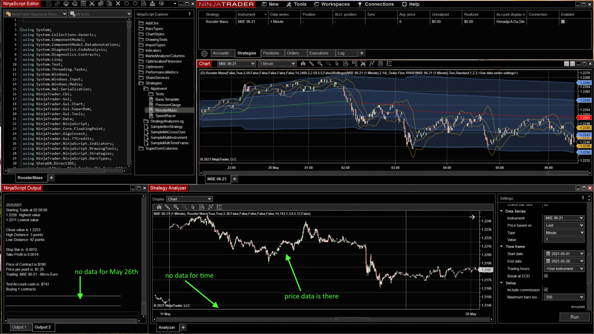 Once complete, please attempt to re-run the Strategy Analyzer. Does the strategy show all data for the given time frame?