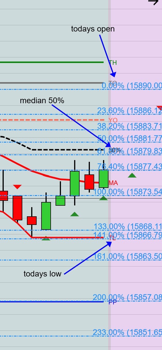 I have edited CurrentOHL, PriorOHLC and the AWO Median to only show todays high as "TH" and so on. I'm using Add Plot Names indicator max margin of 200 the fib percentages would fit perfectly.