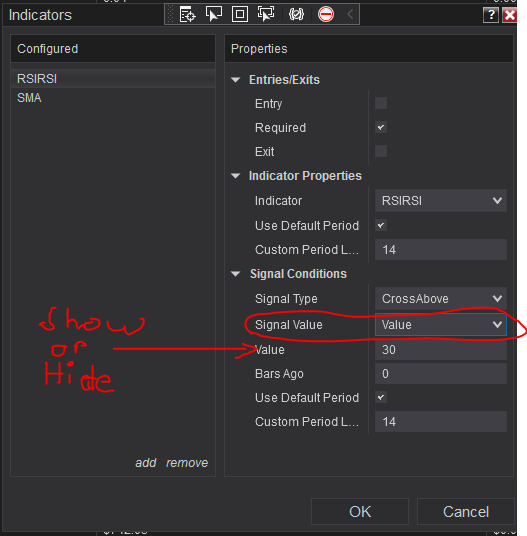 I'm currently trying to show/hide the "Value" input in Indicators Menu when the value of "Signal Value" dropdown changes. I tried using PropertyDescriptorCollection for it but it doesn't work. Is there any way I could make it work? Or is this not possible?Tags: None