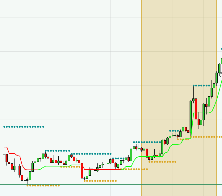 1) when Swing() is showing me higher highs and higher lows. I would also like to highlight the region where the condition is true, and