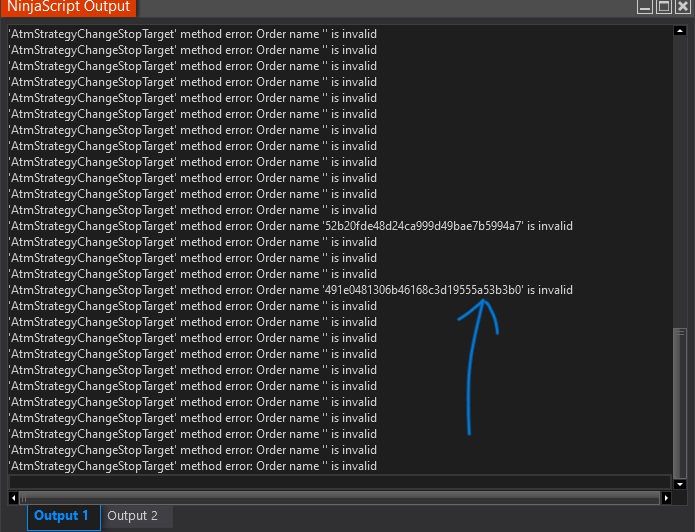 Without the quotes " " and it now shows the order number in the log and on the NinjaScript output but still throws errors.
