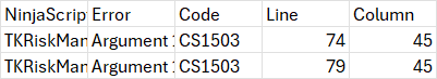 NinjaScript File Error Code Line Column