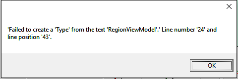 I need to load a tree control that implements the MVVM design pattern. I've done all the legwork that I usually do - I've implemented several of these dialogs this way and never had a problem until now. Of course, I've never done a WPF TreeView. But now I'm getting this error and I have no idea what I need to do to fix it.