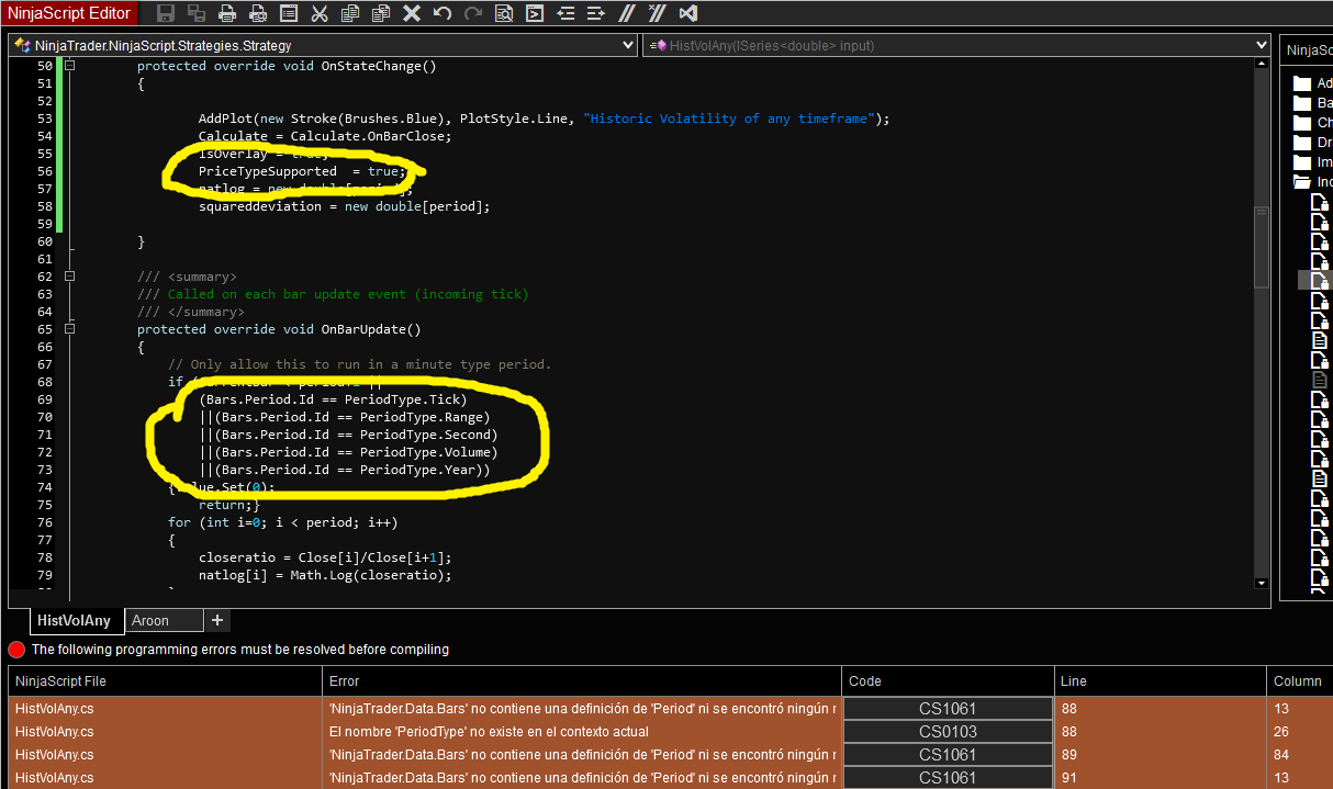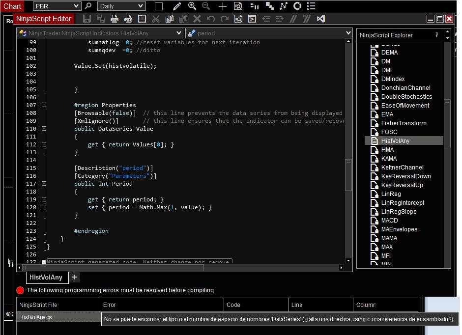 NinjaScript File Error Code Line Column