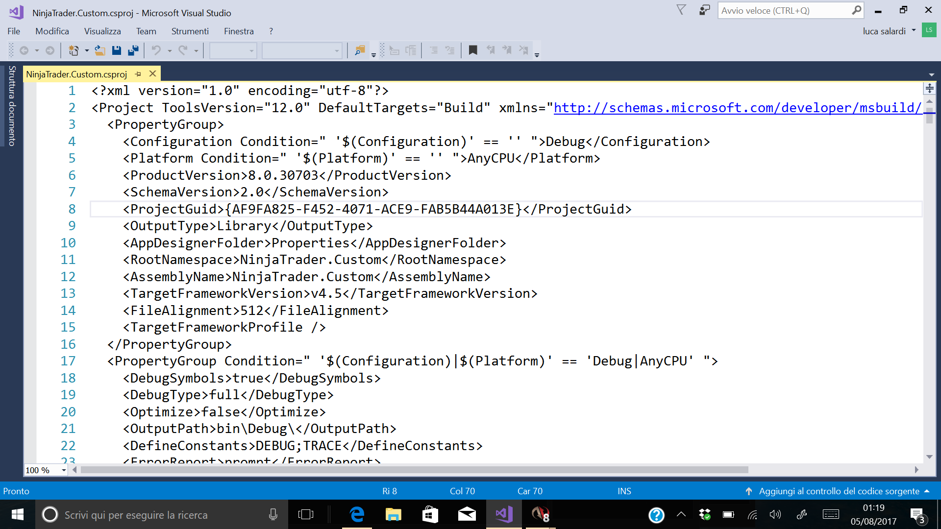 when i click visual studio on ninjascript editor...i see it