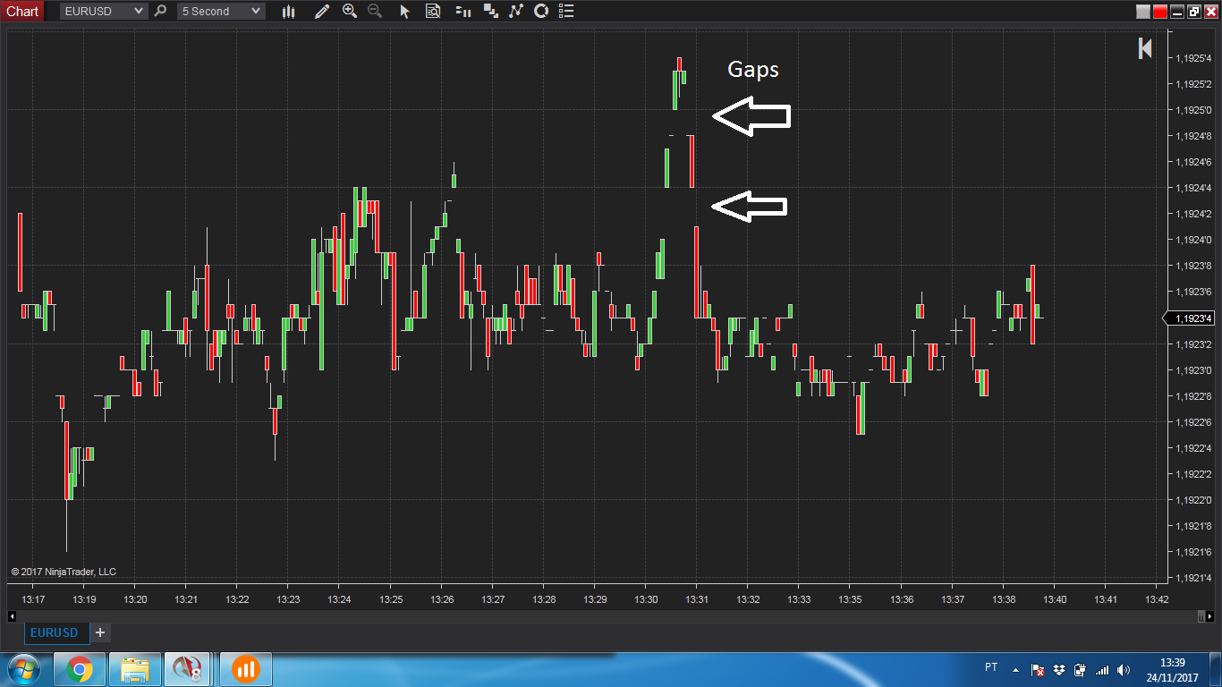 In NinjaTrader8 is possible to remove the gaps for 5 seconds bar to look like this?