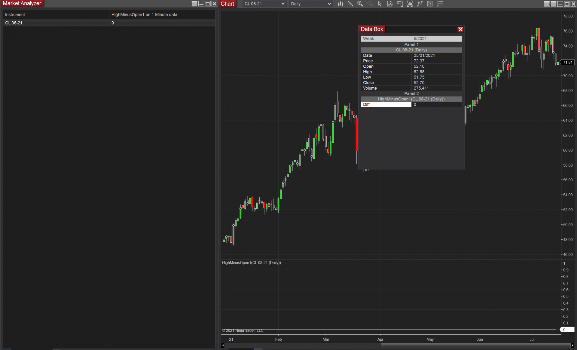 This website is hosted and operated by NinjaTrader, LLC (“NT”), a software development company which owns and supports all proprietary technology relating to and including the NinjaTrader trading platform. NT is an affiliated company to NinjaTrader Brokerage (“NTB”), which is a NFA registered introducing broker (NFA #0339976) providing brokerage services to traders of futures and foreign exchange products. This website is intended for educational and informational purposes only and should not be viewed as a solicitation or recommendation of any product, service or trading strategy. No offer or solicitation to buy or sell securities, securities derivative or futures products of any kind, or any type of trading or investment advice, recommendation or strategy, is made, given, or in any manner endorsed by any NT affiliate and the information made available on this Web site is not an offer or solicitation of any kind. Specific questions related to a brokerage account should be sent to your broker directly. The content and opinions expressed on this website are those of the authors and do not necessarily reflect the official policy or position of NT or any of its affiliates.