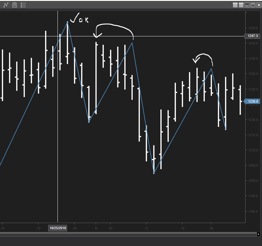 The bar that highlighted by the mouse on the chart is the 10/25 bar as shown your screenshot. However, this bar does not have a swing on it.