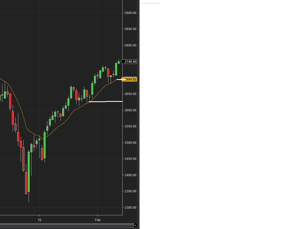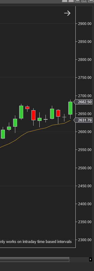 Thanks Paul. Since i need to be clear i have a couple questions, In the LastEma pic the last bar is formed with its value shown in the chartscale colored yellow (2702.46).Scrolling back from there in the PrevEma pic the last bar shown is green (2751.50). How would i find the bars ago for the green 2751.50 reading? i would think the yellow 2702.46 bar would be (using ema(10)) ema(10)[0] so what would be the the green 2751 bar --- ema(10)[?] ?