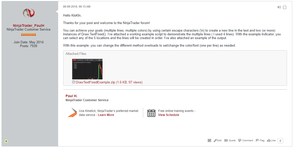 There does not appear any information anywhere else on how to get Draw.Textfixed to draw multiple lines of text and its details I need to assist with an indicator I am working on.